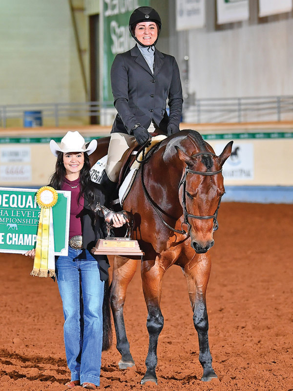 Above: L2 Amt Hunt Seat Equitation: Eat Pray Lope, bred by Cory Seebach/Candice Hall, owned and shown by Maggie M McCrady. Below: 3-Year-Old Non-Pro Stakes Level 2 Champion: Deja Whoo owned and bred by Scott and Linda Berwick, and shown by Linda Berwick. Photos: Shane Rux