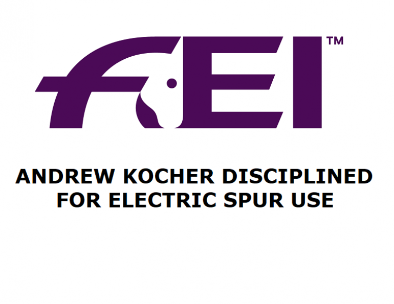 The Fédération Équestre Internationale (FEI) Tribunal has suspended USA Jumping athlete Andrew Kocher for ten years, and disqualified him from eight events between June 2018 and November 2019, for using electric spurs on horses. The athlete has also been fined CHF (Swiss franc) 10,000 and ordered to pay costs of CHF 7,500.