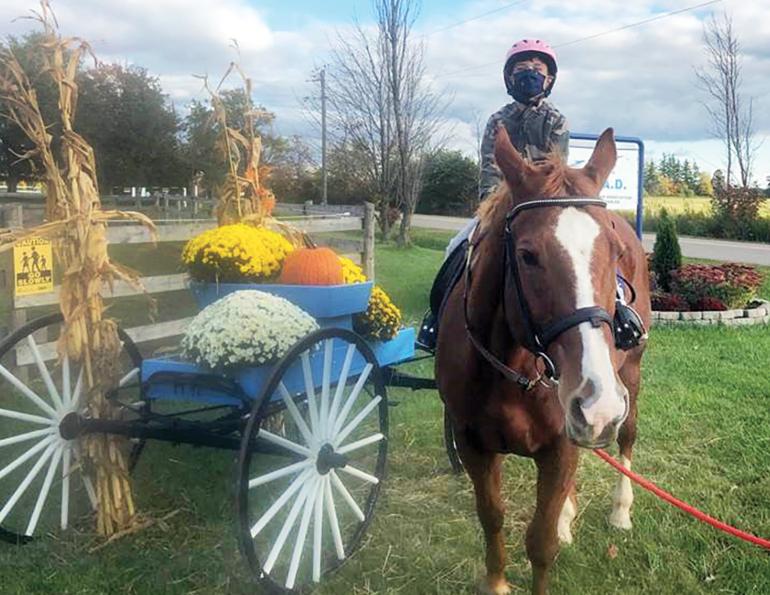 Main Photo: Colby riding Hottie. Colby has been riding for a year and is perfecting his steering at the walk and sitting trot. Credit: Hilary Webb, T.E.A.D. Equestrian Association for the Disabled