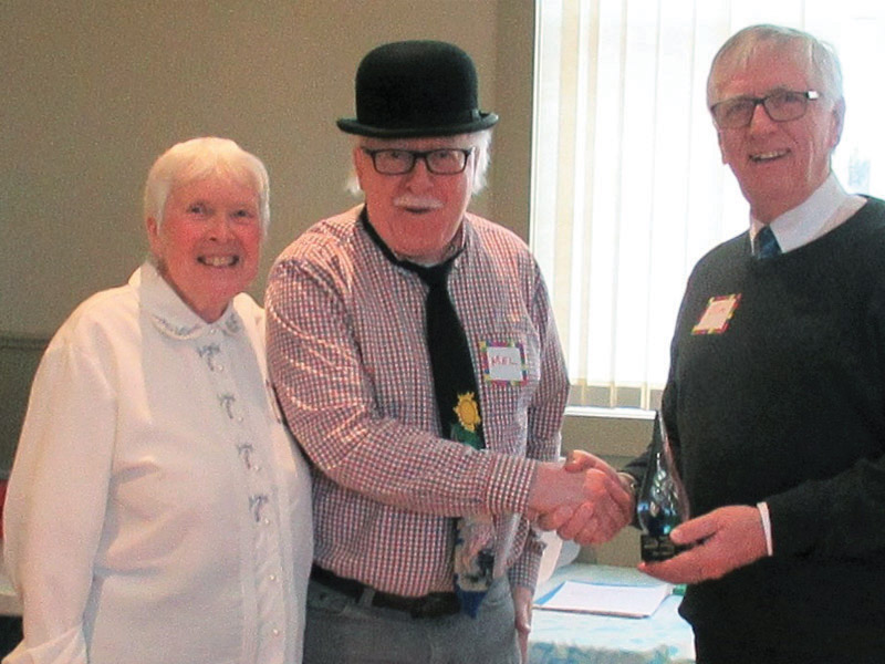 Mel Gallant receiving the Marian Chartley Award for Outstanding Administrator. L-R: Daphne Davey, Mel Gallant, Jim McQuaid. Photo: The Joyriders