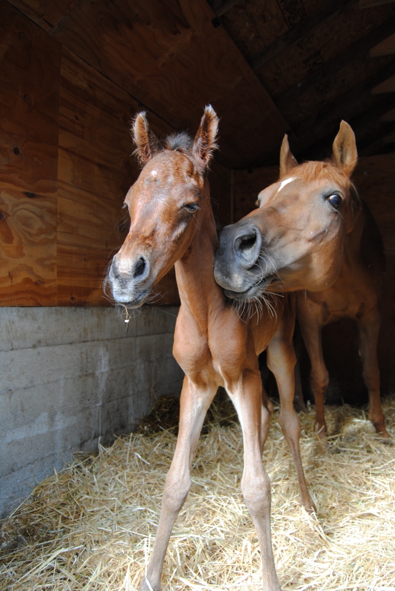 Crispy, pictured here hamming it up for the camera with mom, Kiss, was born on May 29, 2012. “The kids stayed home from school to watch the birthing and it was amazing!” says owner and photographer Irene Attema of BC.