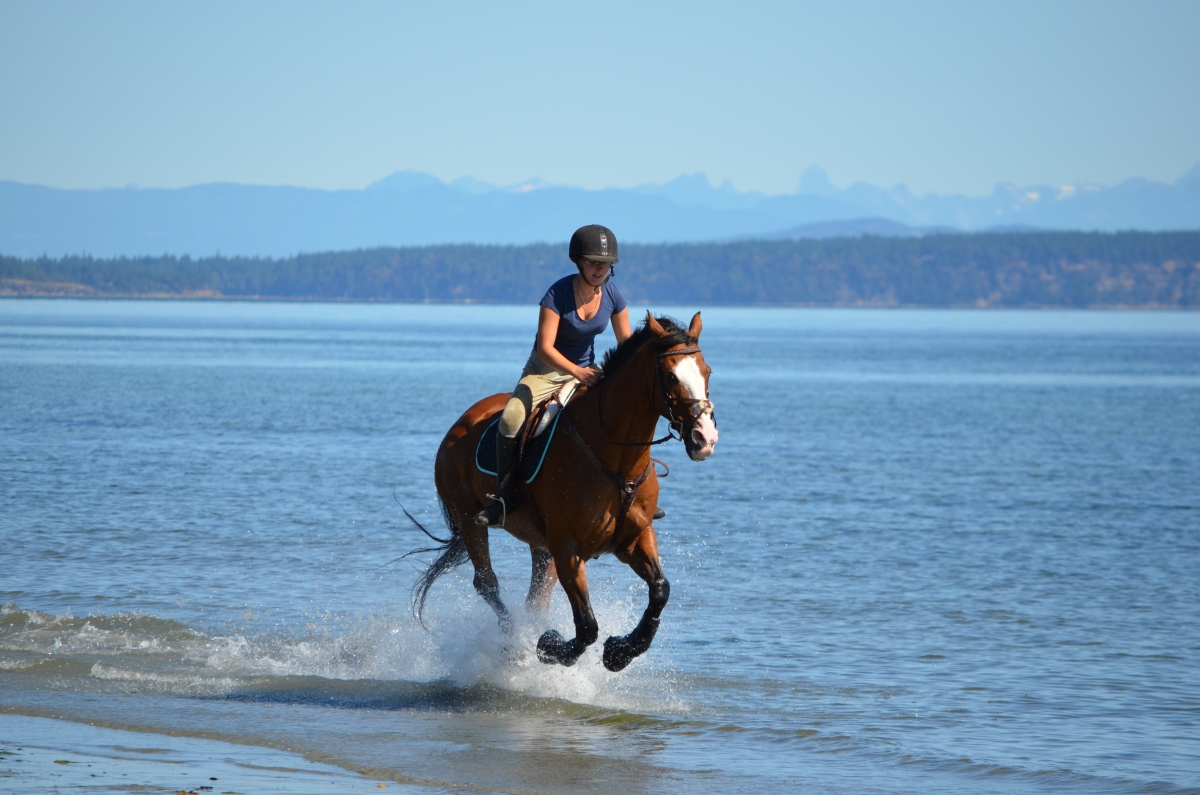 Shoreline Gallop “Every year for my birthday we take the horses to a local beach. Nothing cures the soul like a good gallop across the shore with waves splashing and the smell of the ocean,” says Samantha Saunders of riding her 19-year-old Appendix gelding, Dash, on the BC coast. Photographed by Mark Perrins.