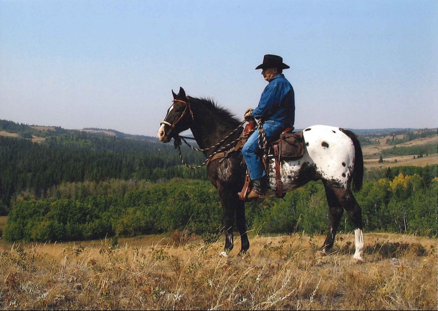 Moutain View Pilgrim, photographed here in the Cypress Hills in Saskatchewan at age 27 with owner Bill Merritt aboard, sadly passed away in February of this year. “He was a human disguised as a horse,” says Tracey Schuster, Bill’s wife and the photographer. “He had a big, huge heart.”