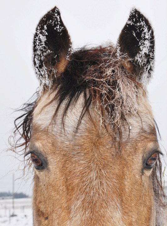 Fergie catching snowflakes! “We were on our way to a Santa Claus parade,” says Ontario’s Cindy Vyse, who was snapping photos of her mare Fergie “all braided with her Christmas hat on, and just happened to catch her with eyes closed and catching a snowflake! It was priceless!” |