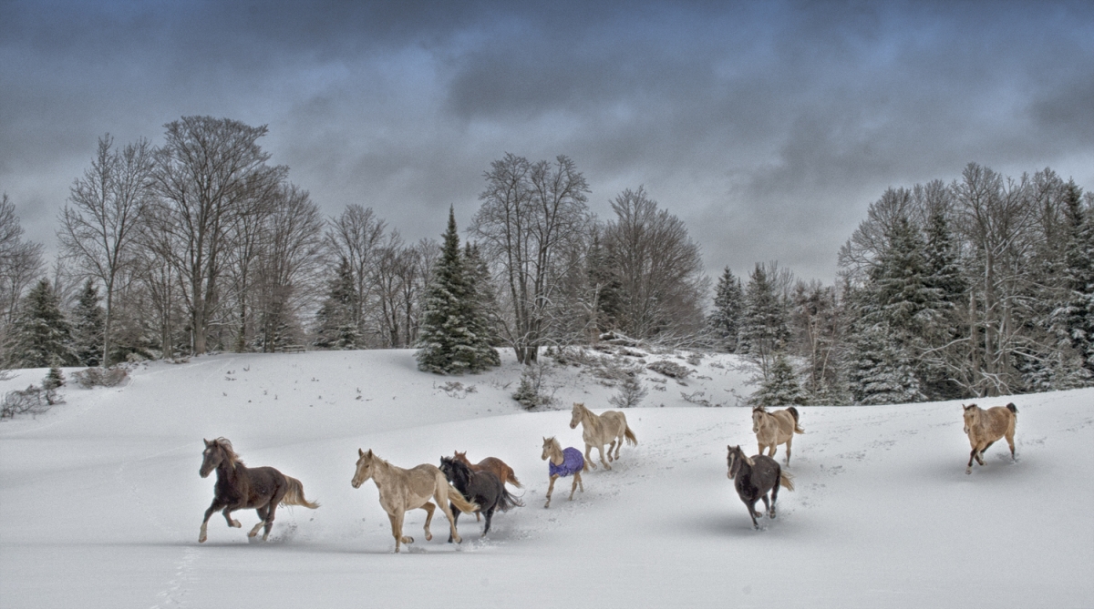 Frosty Footsteps In this stunning photo, Peter Lindsay captured his Rocky Mountain mares running in the snow just as a new storm came rolling across the Ontario hills.