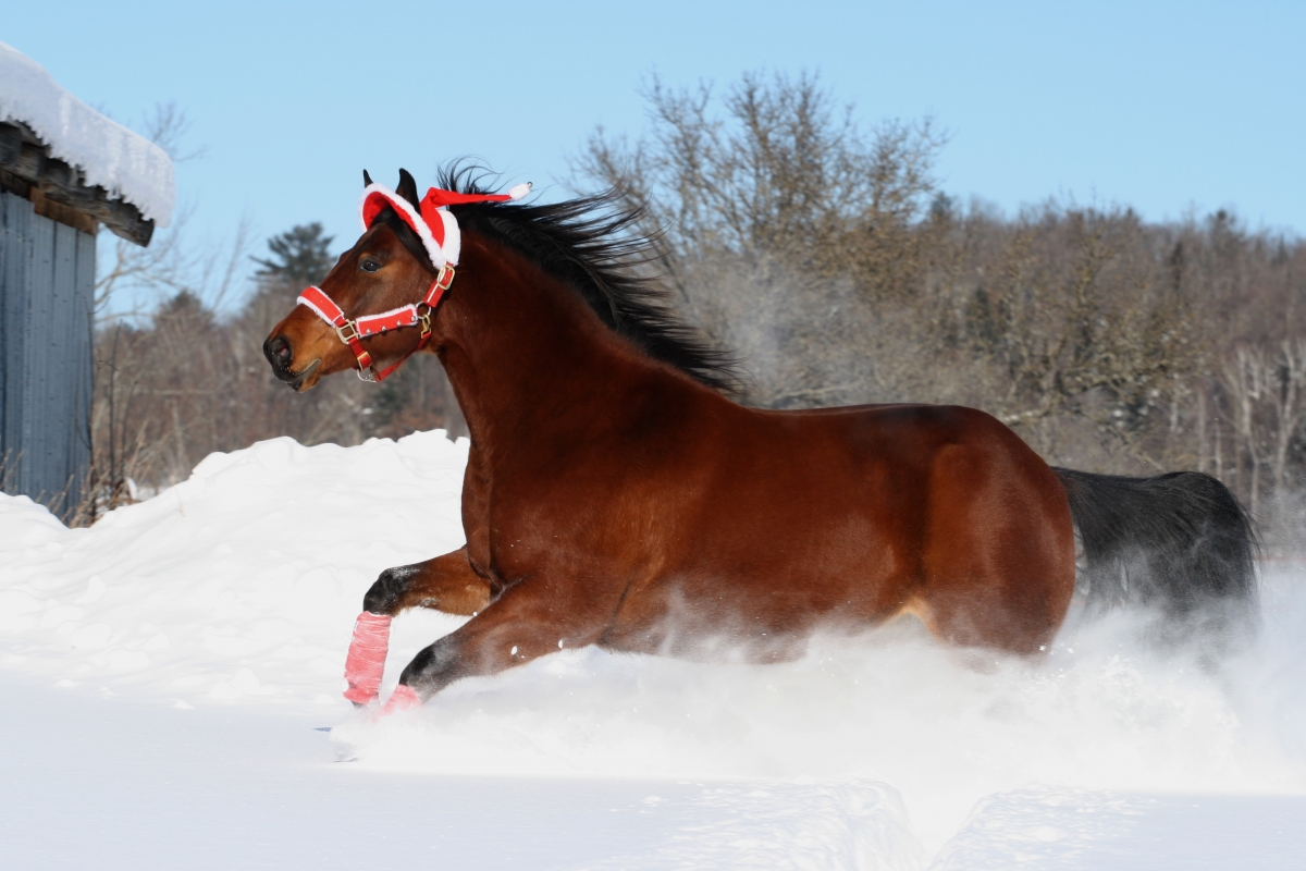 Fun in the snow “For a few years I was looking to buy a Christmas halter. When I finally found one I immediately went to the barn to try it on Stormy,” says owner and photographer Sabrina Cousineau of Quebec about her eight-year-old Standardbred-cross horse. “I decided to take him outside in his field and take a few pictures. I had a great time shooting him and I was laughing when I saw all the photos with the little pompon in the wind!”