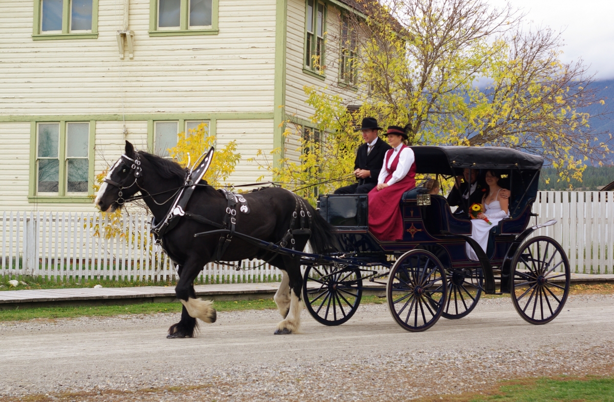 Heritage Wedding This wedding took place at Fort Steele Heritage Town, near Cranbrook, BC. Photographer Giselle Pierce says, “After the ceremony, the bride and groom got to go for a carriage ride around the town. All the wedding party, friends, and family ran along behind. It was fun to watch!”