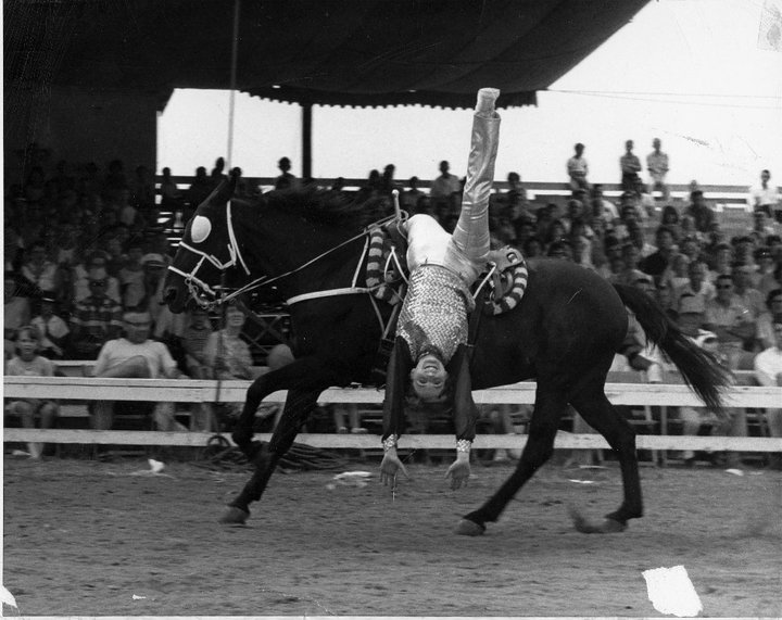 Already a horse lover and rider before she met Tom Bishop Sr., Jan Bishop was enthusiastic to learn trick riding and became an accomplished performer. Photo courtesy of Tom Bishop’s 4B Ranch Productions