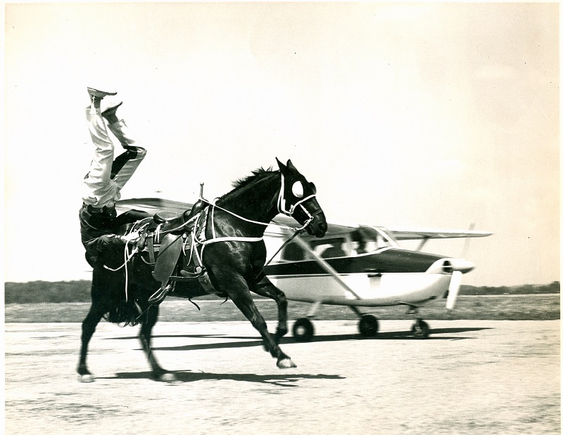 FIRST GENERATION (above): Thomas W. Bishop performs a liberty stand (without the benefit of a trick saddle).