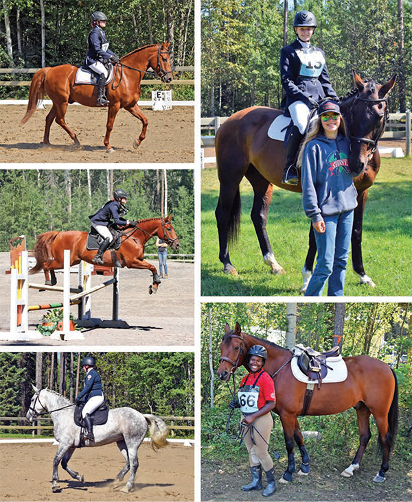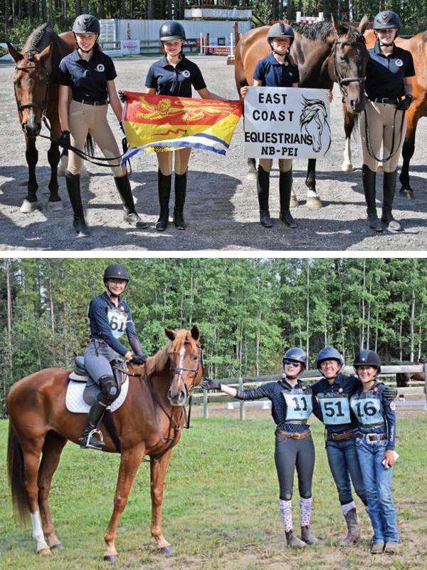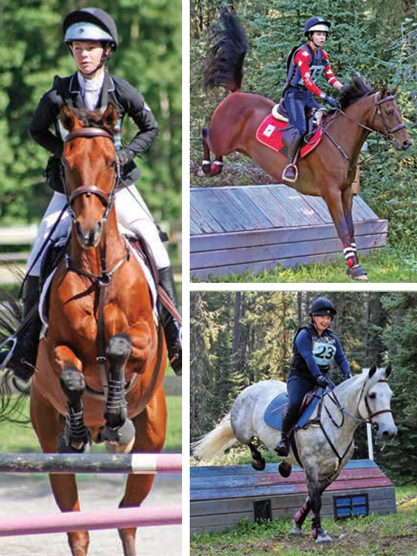 Above/Below: Rallies consist of a three-phase event (dressage, cross-country, and show jumping). Competitors are also scored on stable management, which involves many aspects of horse care. These photos show some of the action and friendly competition from the 2022 Pony Club National Rally held at Prentice Creek Equestrian Centre in Clearwater County, Alberta with riders from coast to coast participating. Photos courtesy of Kelly Brouwer