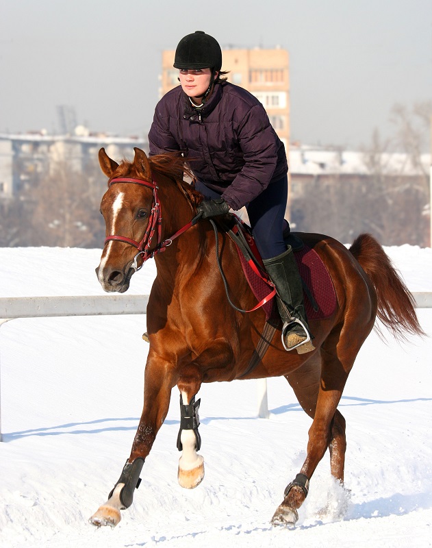 Photo: By resisting the temptation to stay warm and cozy inside, and pushing herself outside and into the saddle for an exhilarating winter gallop, this rider will feel stronger and much more positive. Photo: ©Canstockphoto.com/Cookelma