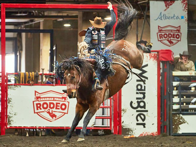 A typical rodeo might need 30 to 40 head of bucking stock, which is generally supplied by a large stock contractor. Top horses produce top rides, so it behooves rodeos to hire the best horses available. At larger rodeos such as the Calgary Stampede, different stock contractors often supply horses for each day. Large contractors may also run smaller contractors’ horses under their name so that good quality horses owned by smaller contractors can still be used. That means individual contractors might only have a few horses at the Canadian Finals Rodeo (CFR) or National Finals Rodeo (NFR), not their whole herd of available horses. Also, to ensure that top horses appear at the final rodeos, prior to the CFR and NFR, riders can vote on which horses they want at that rodeo.